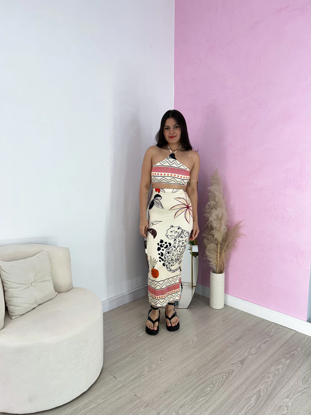 Feito em tecido suplex de toque macio, ele traz um cropped moderno e uma saia midi super estilosa, perfeitos para criar um visual leve e cheio de personalidade.