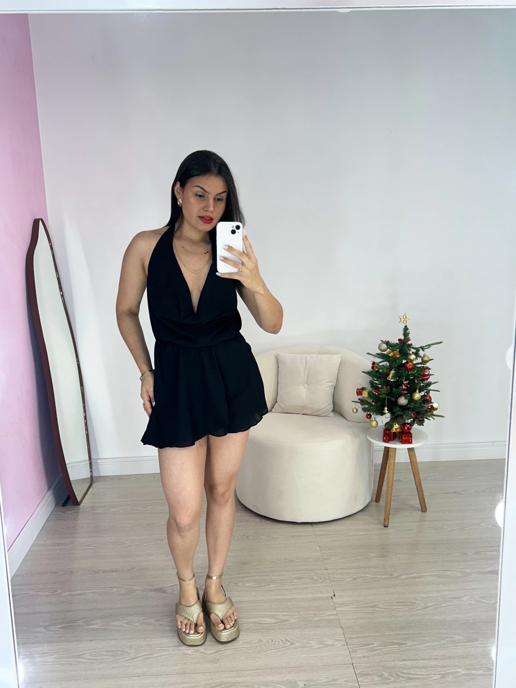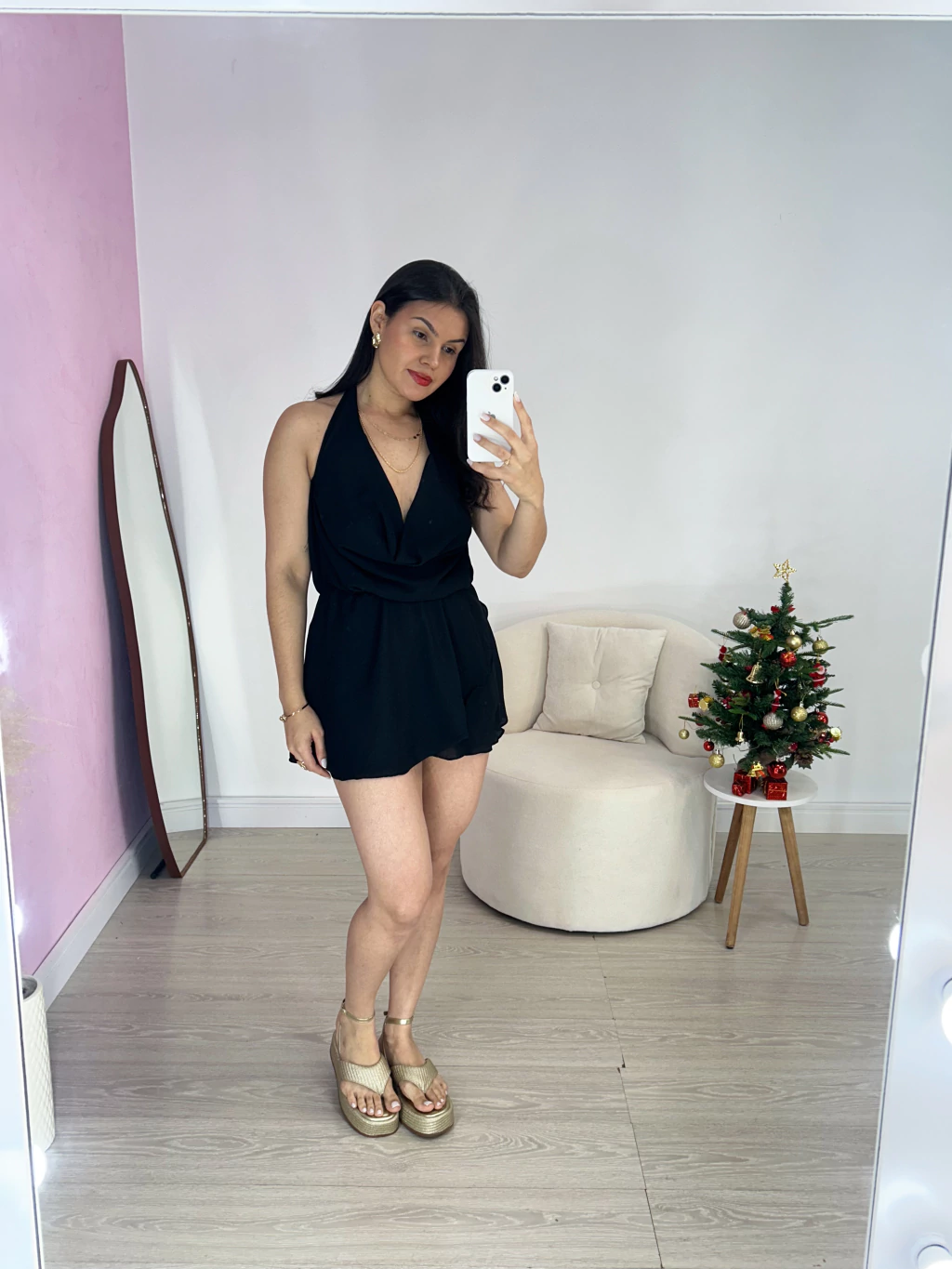 Perfeito para brilhar nas festas de fim de ano, o Macaquinho Maitê é feito em crepinho leve e fluido, que garante conforto e movimento elegante. Seu decote da moda e as amarrações delicadas adicionam charme e sofisticação ao look. Um modelo feminino, moderno e super versátil, ideal para celebrar com estilo e se sentir incrível em qualquer ocasião especial. ✨💛