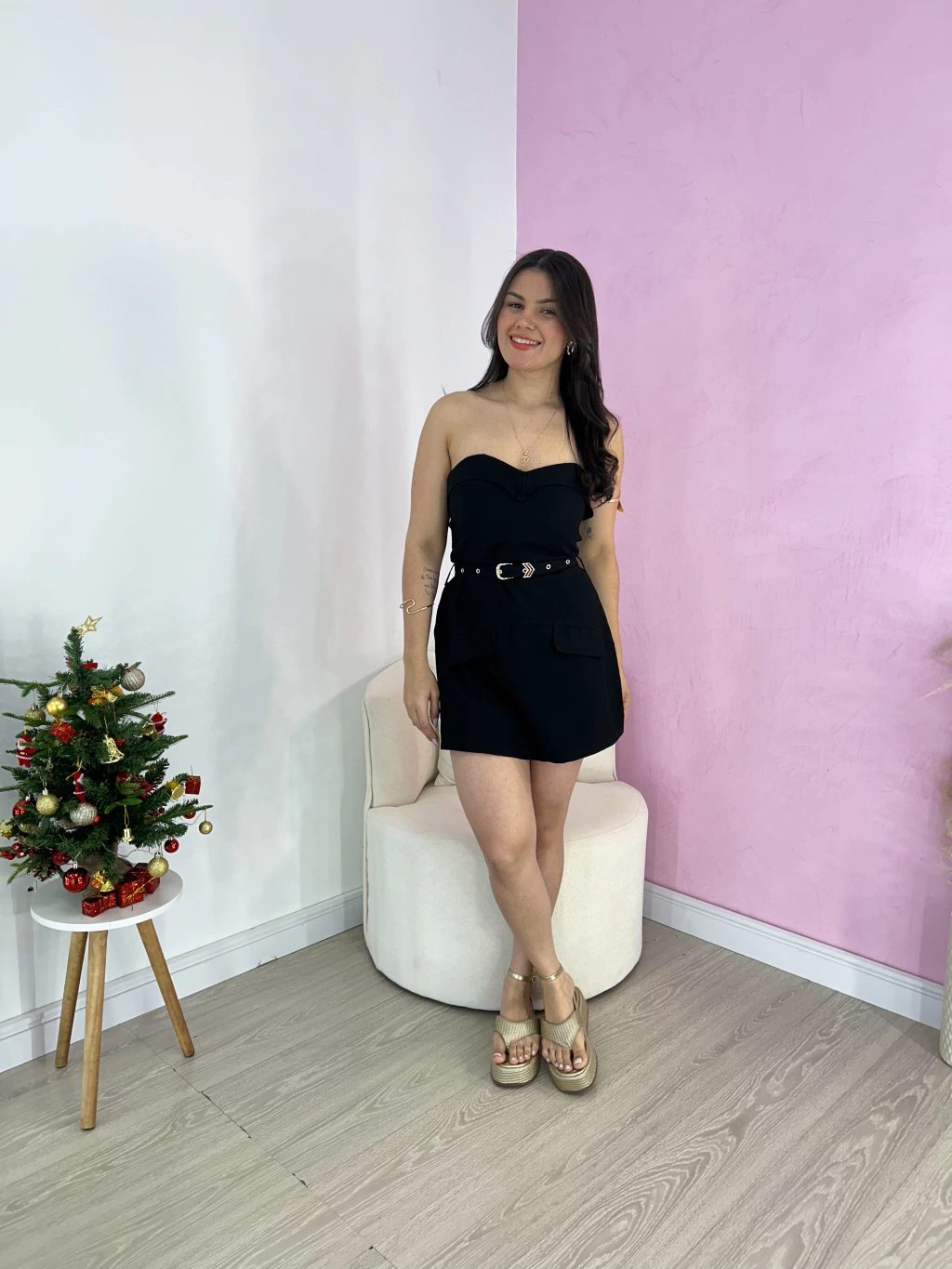 O Macaquinho Melina é sinônimo de sofisticação com um toque moderno. Em tecido sensorial estruturado, ele traz a modelagem tomara que caia que valoriza o colo e imprime personalidade ao look.