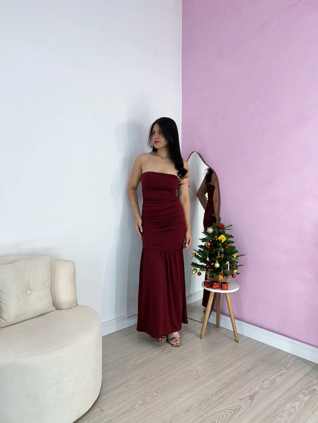 Com modelagem única, ele entrega um visual sensual e impecável. O destaque fica para o estilo tubinho com barra sereia, que alonga, valoriza e cria aquela silhueta dos sonhos. Confeccionado em suplex, o vestido veste como uma segunda pele, oferecendo firmeza e conforto. O tomara que caia completa o charme, trazendo elegância e ousadia na medida certa.